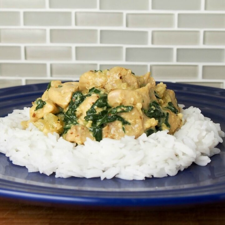 Fragrant chicken curry with chard, coconut and cashew