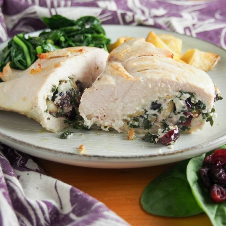 Goat cheese stuffed chicken with spinach and cranberries