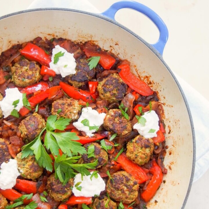 Kofte-style lamb meatballs in a tomato-pepper sauce