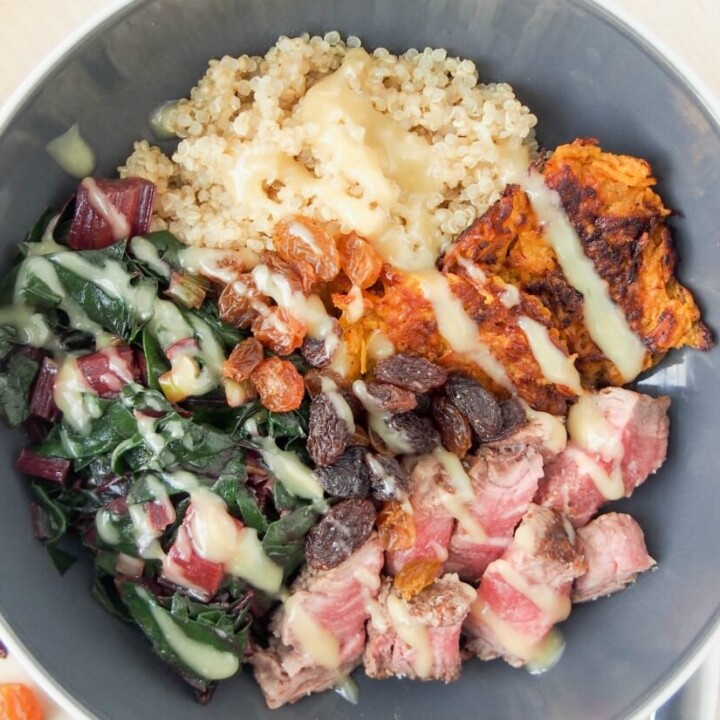 Leftover steak and quinoa bowl