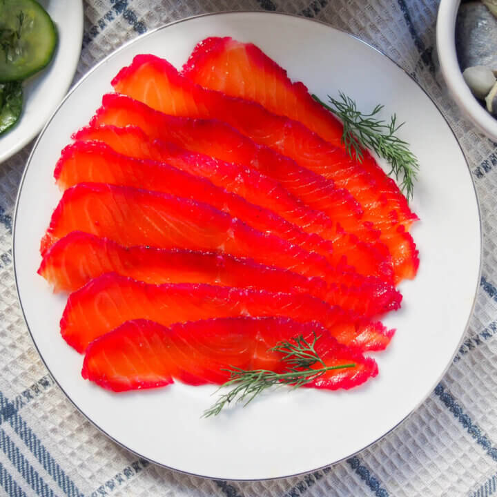 Beet cured salmon