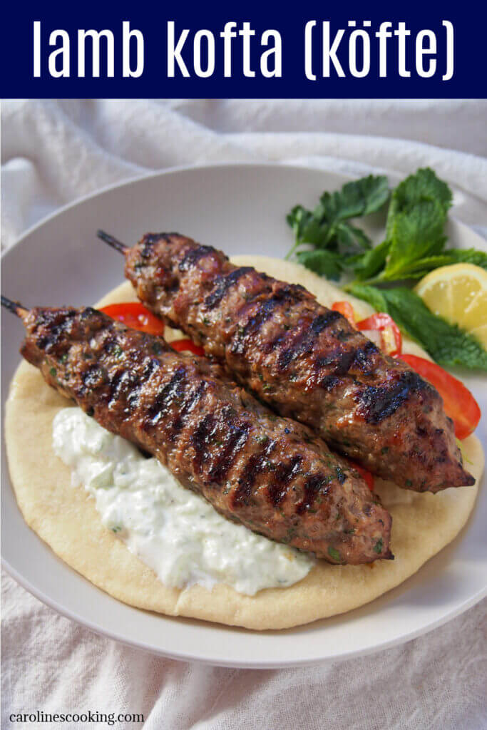 These lamb kofta (köfte) are an easy mix of lamb, herbs and a few spices. They have just enough seasoning to add that bit of something without taking over from the lamb's flavor. Serve with salad, in pita or however you like, they make a delicious meal.